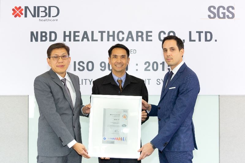 เมื่อวันที่ 23 พฤษภาคม 2562 ที่ผ่านมา บริษัท เอ็นบีดี เฮลท์แคร์ จำกัด ได้จัดพิธีรับมอบประกาศนียบัตรรับรองระบบบริหารคุณภาพ ISO 9001:2015 จาก บริษัท เอสจีเอส (ประเทศไทย) จำกัด และ สถาบัน UKAS ของประเทศอังกฤษ เพื่อแสดงถึงความตระหนักในการนำการบริหารจัดการที่มีคุณภาพในระดับสากลมาใช้ในองค์กรและเป็นไปตามวิสัยทัศน์ของบริษัทฯ ที่ว่า “มุ่งสู่การเป็นผู้นำด้านผลิตภัณฑ์ความงามและผลิตภัณฑ์เพื่อสุขภาพ ให้เป็นที่ยอมรับและเชื่อมั่นในตลาดสากล” ภายในงานได้รับเกียรติจากทาง คุณสิรินทร์ สินิทธานนท์ ผู้จัดการฝ่ายรับรองระบบงาน (Certification Manager) บริษัท เอสจีเอส (ประเทศไทย) จำกัด ในการมอบประกาศนียบัตรดังกล่าว โดยมีคุณสมศักดิ์ กวีไตรภพ ประธานเจ้าหน้าที่สายงานการขายและการตลาด (Chief Commercial Officer) และ คุณโธมัส ลาฮ็อค ประธานเจ้าหน้าที่สายงานการผลิต (Chief Production Officer) เป็นตัวแทนของบริษัทฯ ในการรับมอบ โดยแสดงถึงเจตนารมณ์ในการบริหารงานและพัฒนาองค์กรให้มีคุณภาพเพื่อสร้างความพึงพอใจและตอบสนองต่อความต้องการของลูกค้าของบริษัทฯ ในทุกๆ มิติ