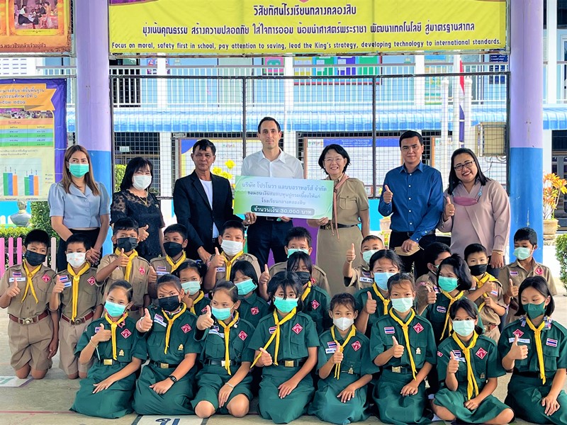 เมื่อวันที่ 15 กันยายน 2565 ตัวแทนคณะผู้บริหารและพนักงาน บริษัท โปรโนวา แลบบอราทอรีส์ จำกัด ซึ่งเป็นบริษัทย่อยของบริษัท เอ็นบีดี เฮลท์แคร์ จำกัด นำโดย Mr.Thomas Laroque ประธานเจ้าหน้าที่สายงานปฏิบัติการ มอบเงินสนับสนุนการปูกระเบื้องพื้นอาคารโดมอาคารอเนกประสงค์ให้แก่ โรงเรียนกลางคลองสิบ ตำบลบึงทองหลาง อำเภอลำลูกกา จังหวัดปทุมธานี มูลค่า 30,000 บาท โดยมีนายวิเชียร พิกุลกลิ่น นายก อบต.บึงทองหลาง นางพัชรินทร์ ฉัตรนารัตน์ ผู้อำนวยการโรงเรียน คณะครูและนักเรียน โรงเรียนกลางคลองสิบ ให้เกียรติ์รับมอบเงินสนับสนุนจำนวนดังกล่าวนี้