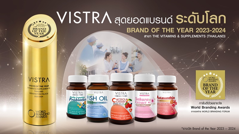 วิสทร้า (VISTRA) ยืนหนึ่งตอกย้ำความเป็นแบรนด์คุณภาพชั้นนำด้านผลิตภัณฑ์เสริมอาหารเพื่อสุขภาพและความงาม ล่าสุด สร้างปรากฏการณ์คว้ารางวัล สุดยอดแบรนด์ของโลกแห่งปี (Brand of the Year) ในงานประกาศผล World Branding Awards ปี 2023 – 2024 จากเวที World Branding Forum ซึ่งเป็นองค์กรไม่แสวงผลกำไรระดับโลก ณ พระราชวังเคนชิงตัน กรุงลอนดอน ประเทศอังกฤษ โดย VISTRA ได้รับคะแนนสูงสุดจากการโหวตของผู้บริโภคและผ่านการพิจารณาคัดเลือกจากคณะกรรมการว่าเป็นแบรนด์ที่ได้รับความนิยมและประสบความสำเร็จในเชิงยอดขาย รวมถึงมีกิจกรรมทางการตลาดอย่างต่อเนื่อง จึงส่งผลให้ VISTRA คว้ารางวัลสุดยอดแบรนด์ ประเภทวิตามินและอาหารเสริมยอดเยี่ยม ได้รับการยอมรับในระดับสากล ซึ่งถือเป็นบทพิสูจน์สำคัญสะท้อนให้เห็นถึงศักยภาพของแบรนด์ VISTRA ที่สามารถครองใจผู้บริโภคทั้งในประเทศไทย และยังได้รับการการันตีความเชื่อมั่นในฐานะแบรนด์คุณภาพที่ได้มาตรฐานจากเวทีระดับโลกอีกด้วย