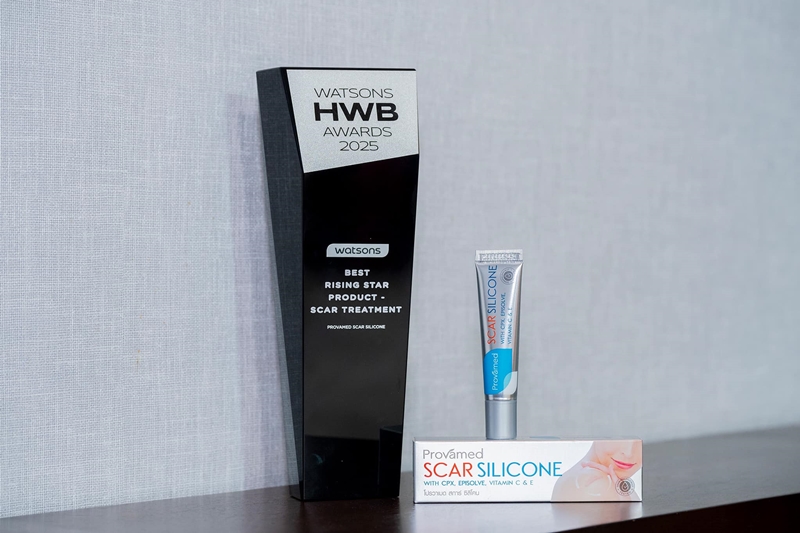 บริษัท เอ็นบีดี เฮลท์แคร์ จำกัด ผู้ผลิตและจัดหน่าย ผลิตภัณฑ์ภายใต้ตราสินค้า “โปรวาเมด (Provamed)” ขอขอบคุณลูกค้าทุกท่านที่ให้การสนับสนุนจนผลิตภัณฑ์ Provamed SCAR SILICONE และ Provamed ACNE RETINOL A GEL จนสามารถคว้า 2 รางวัลแห่งความภูมิใจ HWB AWARD 2025 จาก WATSONS