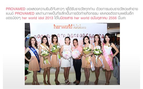 News & Activities News Back 28 August 2013 PR News : Herworld Idol 2013 โปรวาเมด ผู้สนับสนุน การประกวด Her World Idol 2013