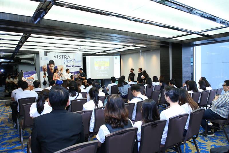 Mickey Allapach Na Pombhejara, our brand presenter and Art Phasut Banyaem, our exclusive guest suggested our customers the right method to do exercise and the role of protein in the diets to support the body strength, how to keep good health and good figure, proper diets and all of us did exercise for our health. In addition, there’re games and many rewards for our customers. See you again on page Vistra Sports.