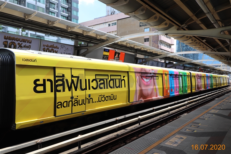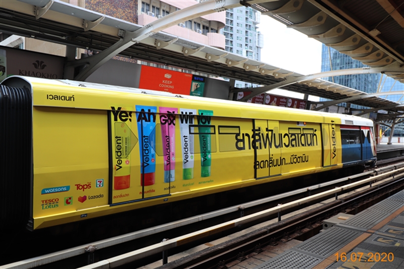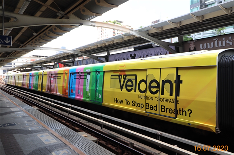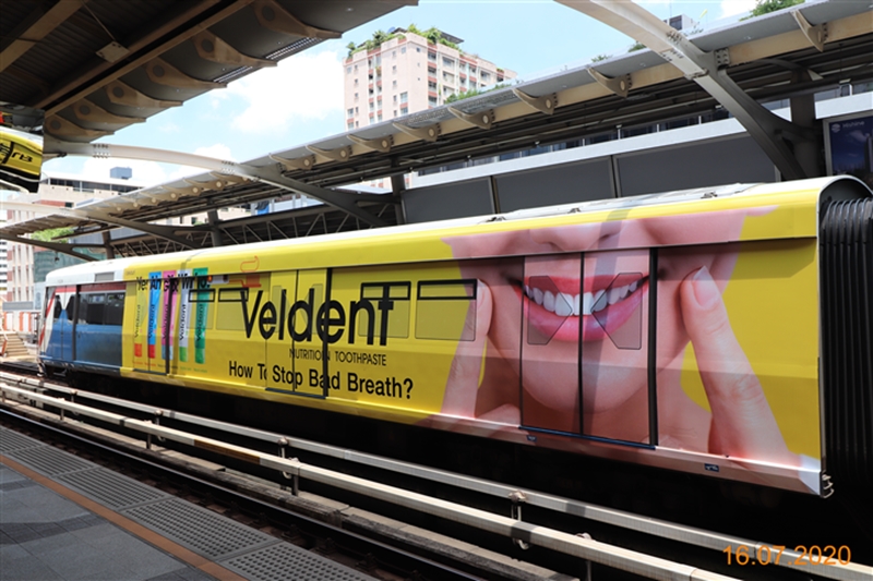 โดยล่าสุดทางบริษัทได้เล็งเห็นโอกาสในการขยายการสื่อสารให้เข้าถึงกลุ่มลูกค้าคนเมืองเพิ่มขึ้น ด้วยการโฆษณาผ่าน wrap ขบวนรถไฟฟ้า (บีทีเอส) จึงเลือกใช้สื่อดังกล่าว ในการประชาสัมพันธ์ผลิตภัณฑ์ “ยาสีฟันเวลเดนท์ (Veldent)” ยาสีฟันแนวคิดใหม่ของคนรุ่นใหม่ โดยบริษัทฯ มุ่งหวังที่จะตอกย้ำแบรนด์ดังกล่าวกับกลุ่มลูกค้าคนเมือง และกลุ่มวัยรุ่น วัยทำงานที่เดินทางด้วยรถไฟฟ้าเป็นประจำ เพื่อเพิ่มโอกาสในการซื้อสินค้ามากขึ้น เนื่องจาก มองว่าตลาดยาสีฟันเป็นตลาดที่ใหญ่และน่าสนใจ ซึ่งการโฆษณาผ่านสื่อรถไฟฟ้าในครั้งนี้ จะใช้เป็นเส้นทางเดินรถไฟฟ้าสายสีลม - สุขุมวิท ตลอดระยะเวลา 3 เดือน เริ่มตั้งแต่ 16 กรกฏาคม 2563 - 15 กันยายน 2563