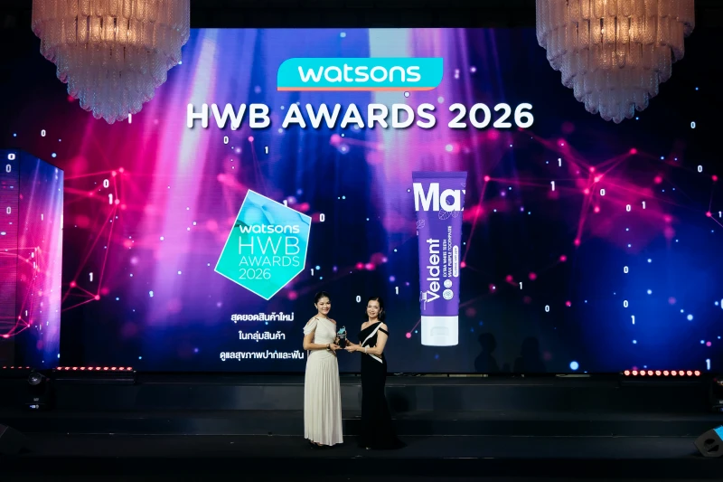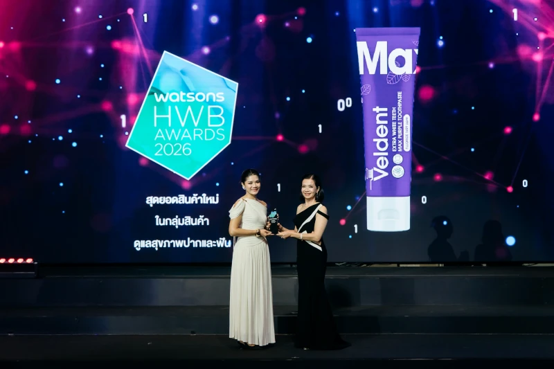 วงการยาสีฟันสั่นสะเทือน! "Veldent" ตัวตึงยาสีฟันม่วง ลดคราบเหลือง คืนฟันขาว ผงาดคว้ารางวัลยอดขายอันดับ 1 ใน Watsons ปี 2026